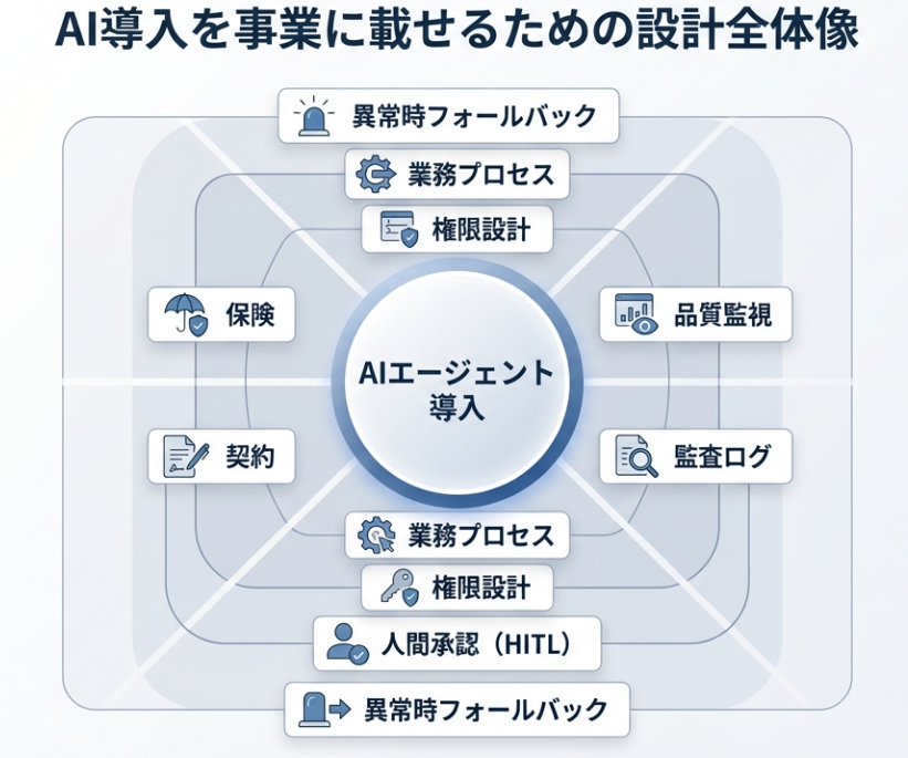 AIを業務に組み込むときに問われるのは、「どのモデルを使うか」だけではありません。どこまで権限を委譲するのか、どこで止めるのか、何を監視するのか、異常時にどう戻すのか。そうした前提設計がなければ、PoCはできても、事業に載せる段階で止まりやすくなります。
