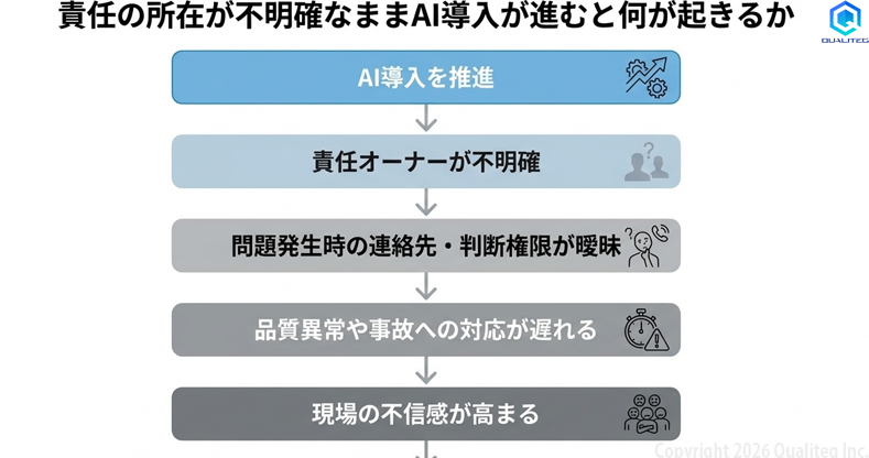 組織内のオーナーシップが曖昧なままでは、どれほど高性能なモデルを使っても、導入は安定しません。AIの導入課題は、技術そのものよりも、責任分解と意思決定構造の設計不備として表れます。