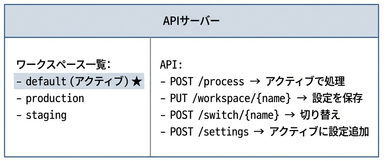 複数のワークスペースを切り替えて使用するAPIサーバー